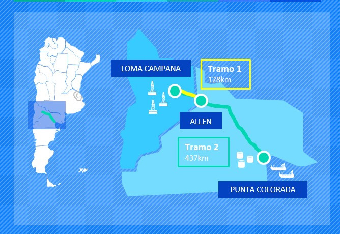 Esa iniciativa contempla la realización de un ducto que transportará hidrocarburos desde Vaca Muerta atravesando toda la provincia de Río Negro y parte de Neuquén y finalizará en un puerto de carga con dos monoboyas en el Golfo San Matías, en aguas jurisdiccionales de la provincia de Río Negro.