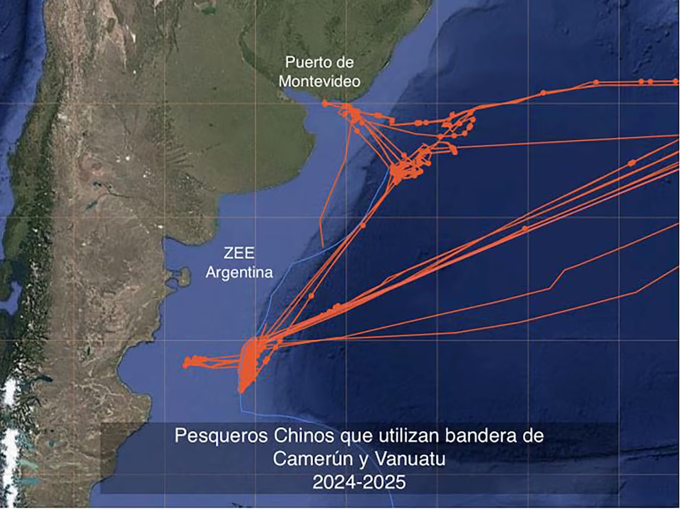 El Círculo de Políticas Ambientales (CPA) reveló la existencia de al menos 13 buques de propiedad de empresas chinas que pescan con “bandera de conveniencia” de países como Vanuatu y Camerún, en la milla 201, es decir al borde de la Zona Económica Exclusiva Argentina (ZEEA). La investigación ya precisó en diez casos la empresa china a la que pertenecen y se trata de una nueva mecánica utilizada para sumar presión al Mar Argentino ya que se faenas especies transzonales.
