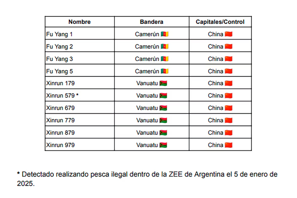 De hecho, uno de esos buques fue captado por la Prefectura Naval Argentina (PNA) a principios de enero dentro la Zona Económica Exclusiva. “Se trata del pesquero Xinrun 579, de bandera de Vanuatu, detectado por el Sistema Guardacostas, una plataforma tecnológica líder en la región que integra diferentes sistemas de información para vigilar los movimientos de los buques y es utilizada por el personal de la Dirección de Tráfico Marítimo, Fluvial y Lacustre de la Autoridad Marítima nacional, instaurada por el Ministerio de Seguridad de la Nación”, informó esa vez Prefectura.