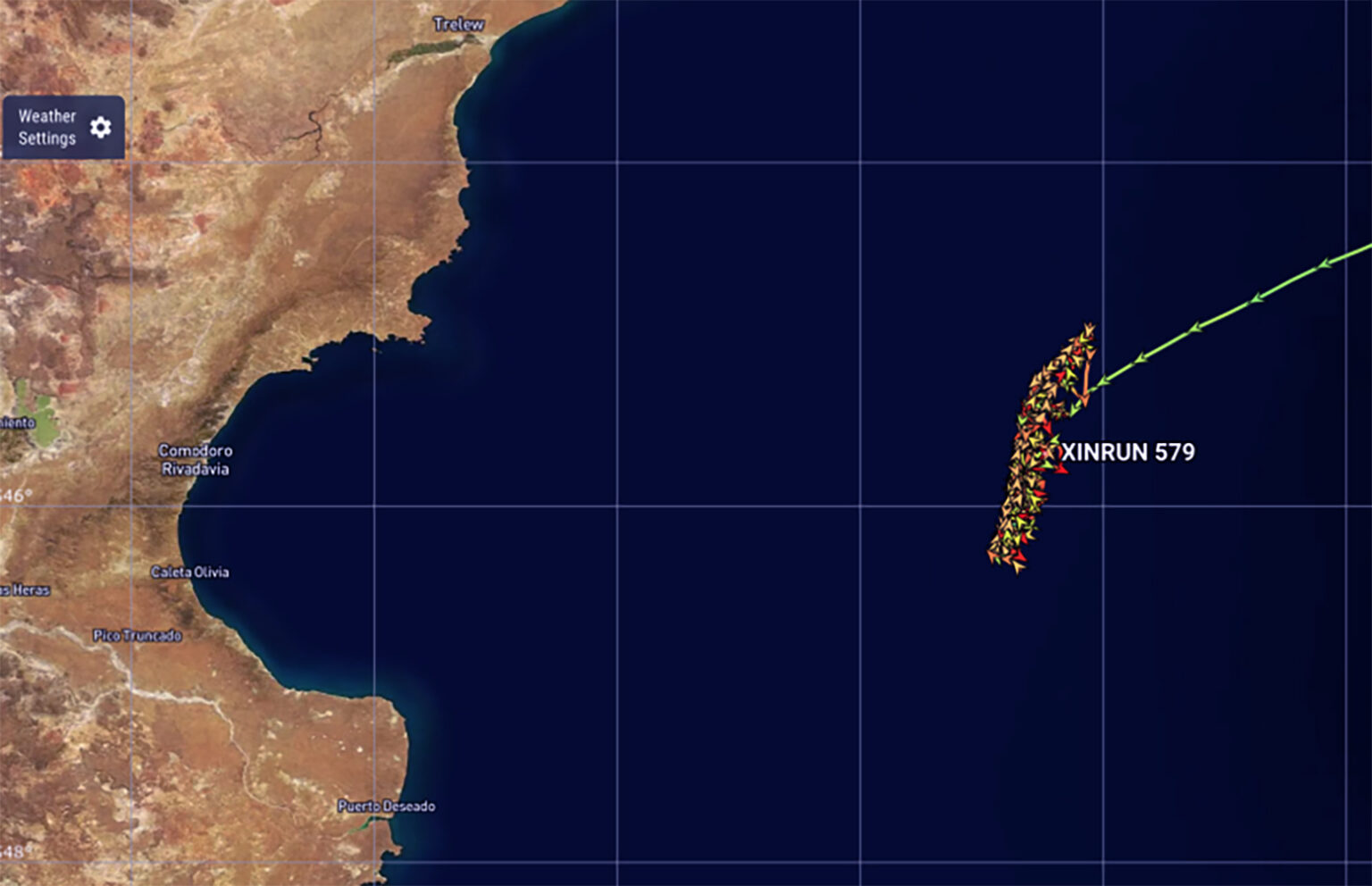 Según la investigación en curso del Círculo de Políticas Ambientales, el Xinrun 579 se dio a la fuga y si bien tiene bandera de Vanuatu “en realidad no es un precario pesquero de madera que apenas navega entre el agitado Mar Austral, y tampoco pertenece a una empresa de las pequeñas islas de apenas 12.000 kilómetros cuadrados, sino que se trata de un arrastrero de alta capacidad y tecnología recién botado”.