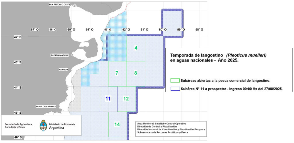 La Dirección Nacional de Coordinación y Fiscalización Pesquera (DNCyFP) dependiente de la Subsecretaría de Recursos Acuáticos y Pesca autorizó un nuevo relevamiento sobre la especie langostino dentro del Área de Veda Permanente de Juveniles de Merluza (AVPJM).