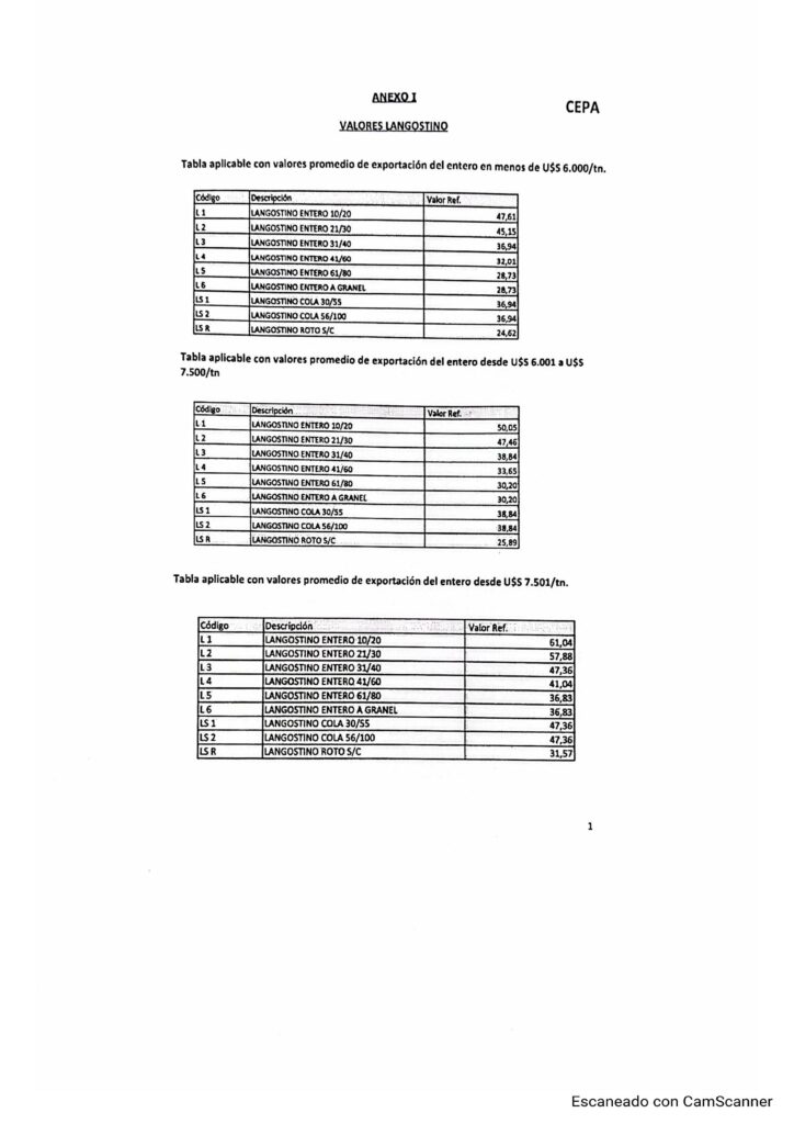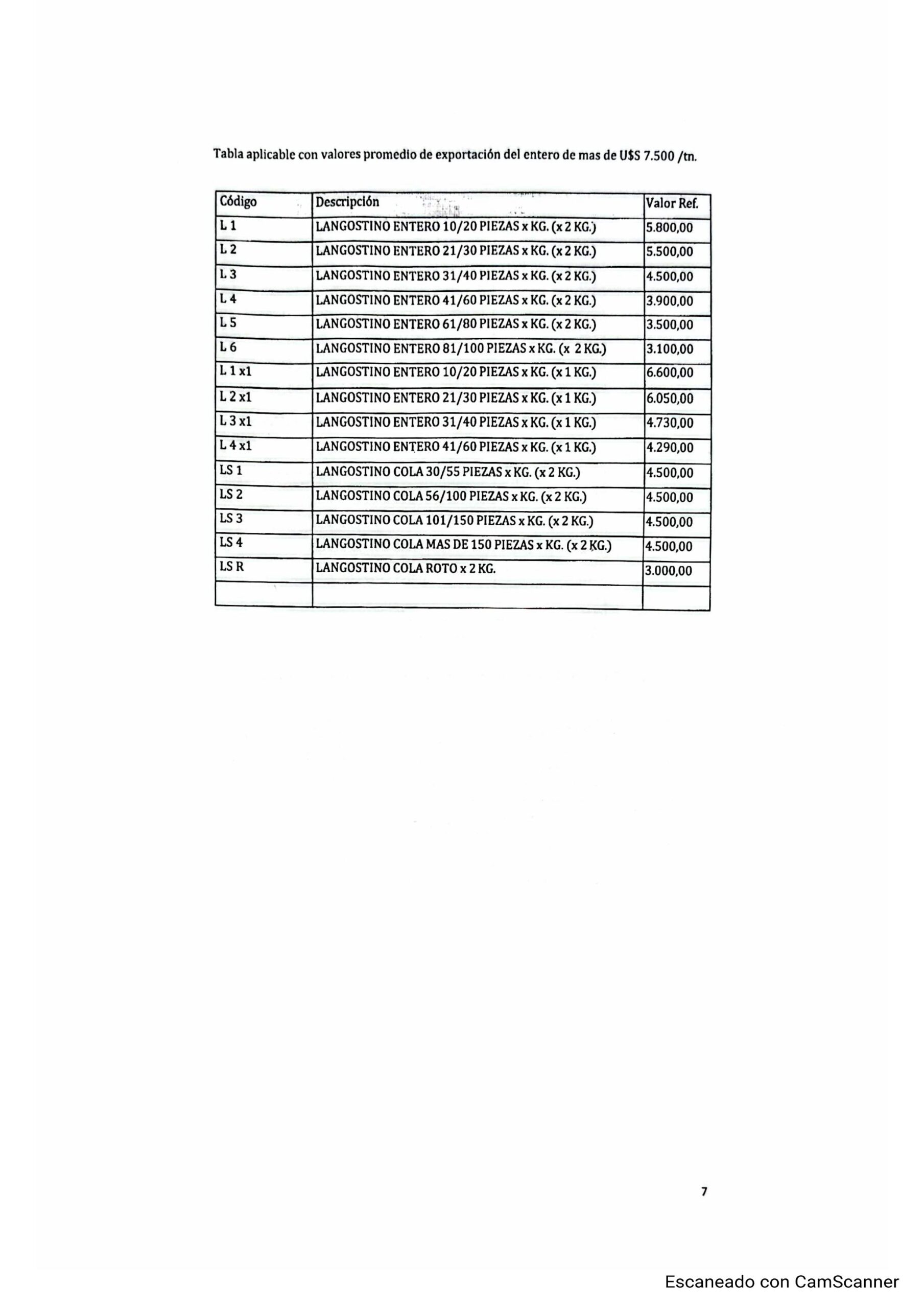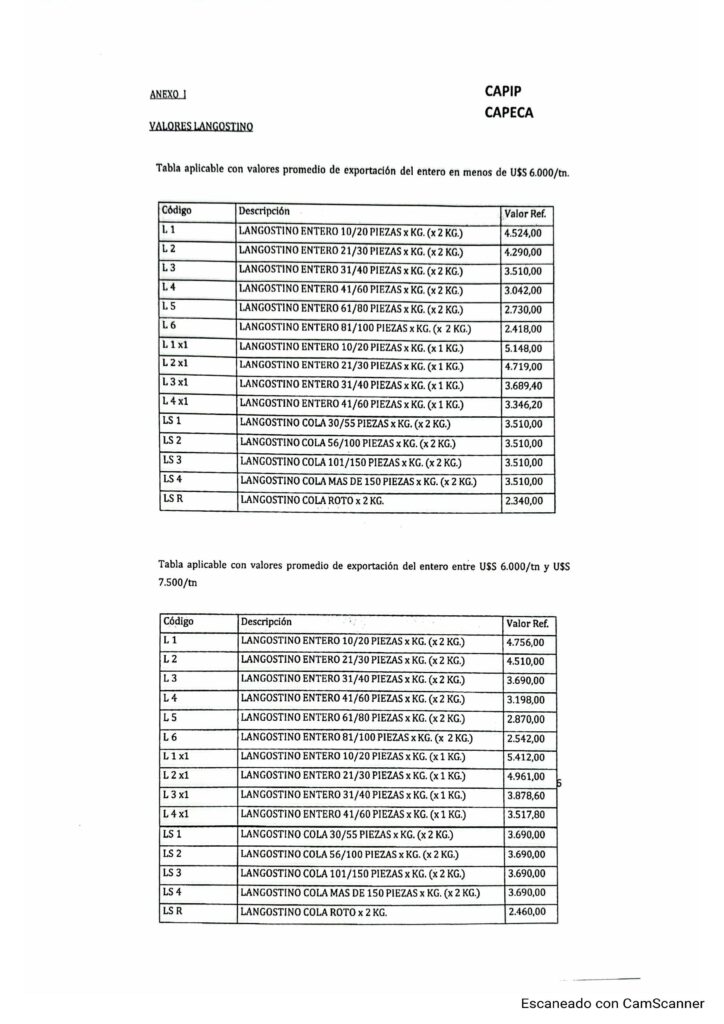 Se propone un esquema de tres tablas proporcionales en función de los precios internacionales de mercado del langostino con valores de langostino entero en menos de USD6.000/tonelada; valores entre USD6.000/tn y USD7.500/tn; y valores superiores a USD7.500/tn.
