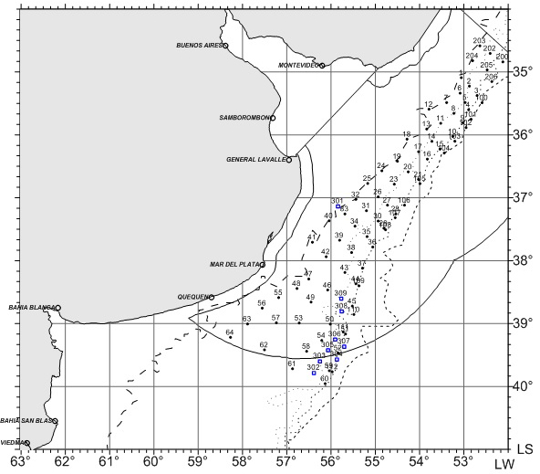 La presente campaña tiene como objetivos principales delimitar el área de puesta del efectivo norte de merluza; determinar la distribución de huevos y larvas de merluza en el plancton; monitorear el estado reproductivo de la merluza y estimar los parámetros biológico-pesqueros (proporción de sexos, estructura de longitudes y edad de los reproductores y longitud de primera madurez), así como también analizar la distribución espacial de los juveniles de merluza; caracterizar a las agregaciones de merluza y fauna acompañante mediante la implementación de técnicas de multifrecuencia y localizar e identificar áreas con agregaciones de larvas y juveniles de merluza.