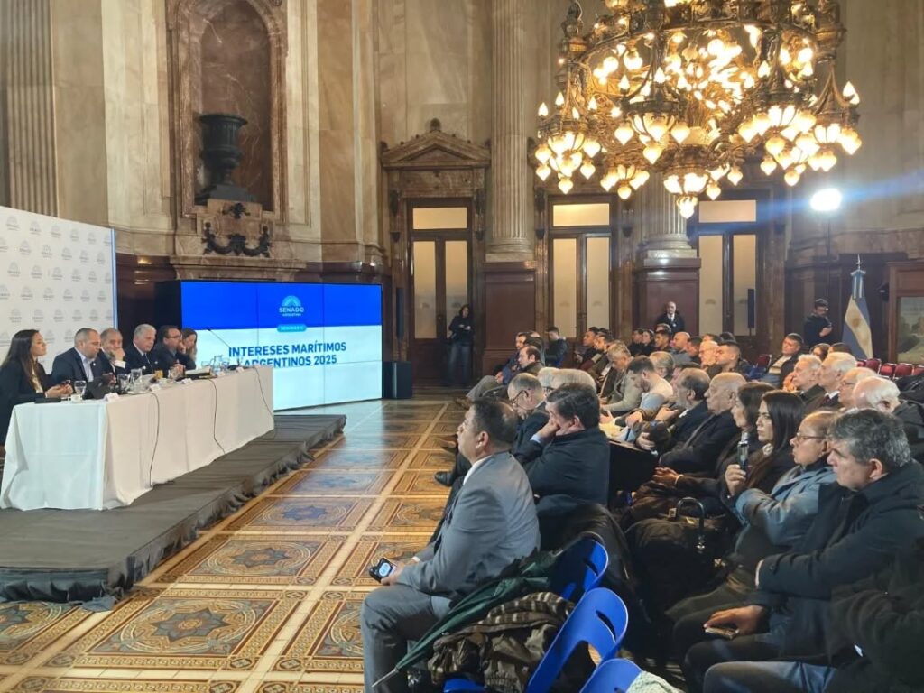 En el Salón Azul del Congreso de la Nación y organizado por la Liga Naval Argentina se desarrolló este martes un seminario “Intereses Marítimos Argentinos 2025. Análisis del decreto 340/25 de desregulación de la Marina Mercante Argentina”.