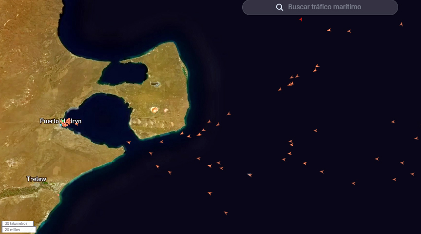 Justamente es el área donde se encontraba operando la flota pesquera que pesca langostino en aguas nacionales fuera del Área de Veda Permanente de Juveniles de Merluza. También se observa el ingreso de buques poteros.