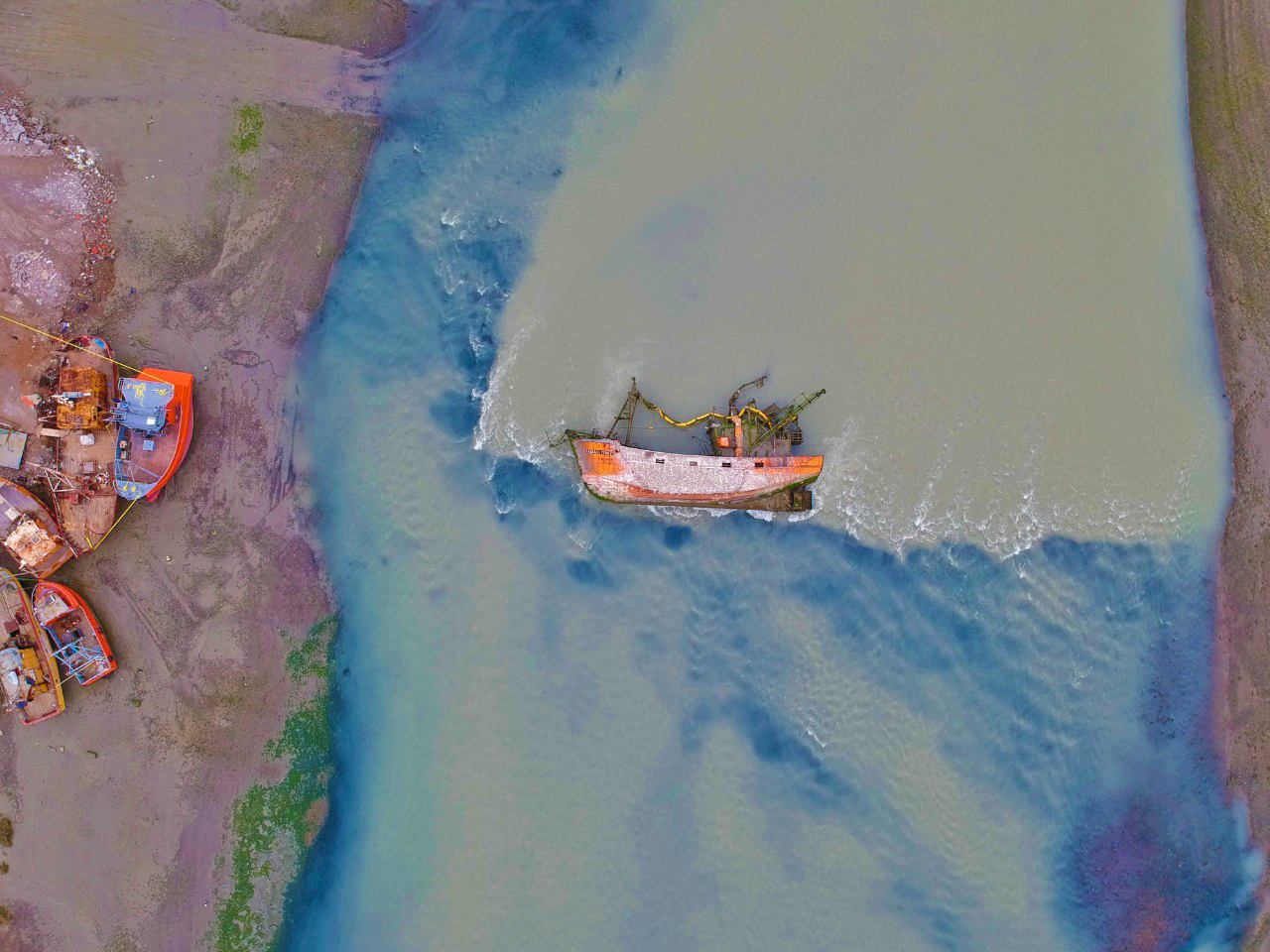 Se trata del buque pesquero Sagrado Corazón (M.N. 1900) varado en la desembocadura del río Chubut, en la zona portuaria de Rawson, cuyo hundimiento se produjo en agosto de 2016.