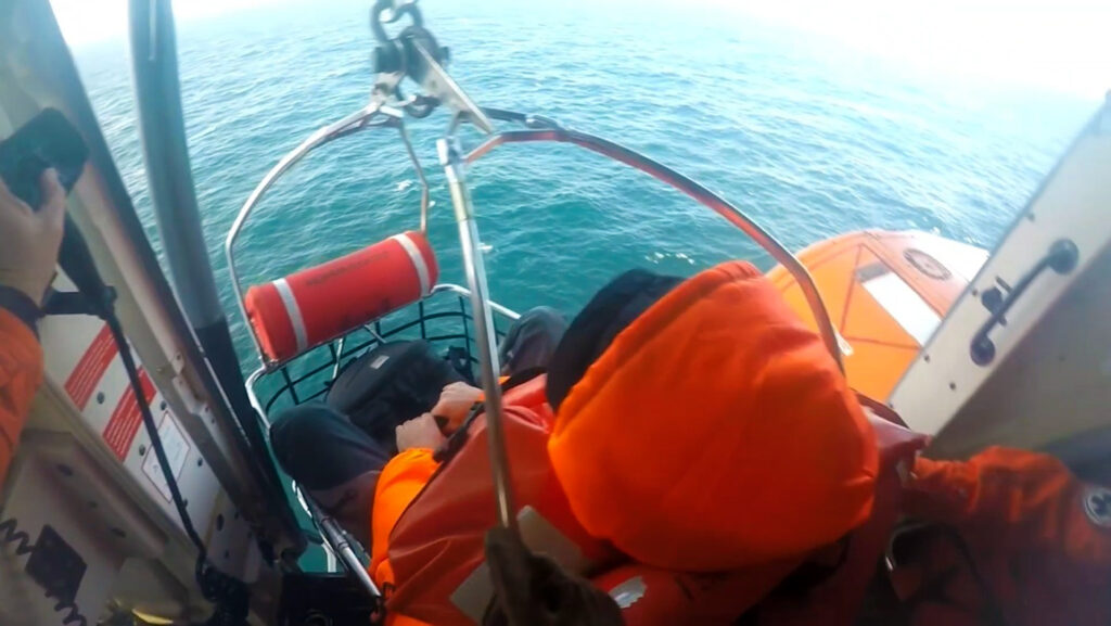 Una vez sobre el buque, se descendió una canasta sanitaria y se izó al tripulante, quien recibió las primeras atenciones a bordo de la aeronave, mientras que en tierra se coordinaba el arribo de una ambulancia al aeropuerto de Mar del Plata.