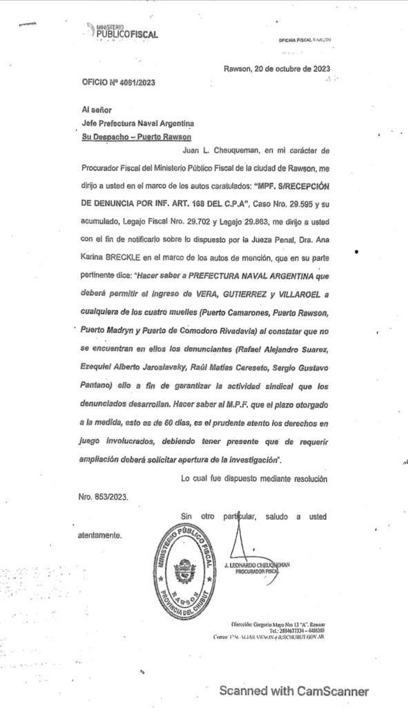 La FEPA, que agrupa a los trabajadores del sector en todo el país, salió a respaldar al SUPA Chubut, y acusaron a la CAFACh de “persecución sindical”, al tiempo que convocaron “a un estado de alerta de todos los estibadores portuarios del país”