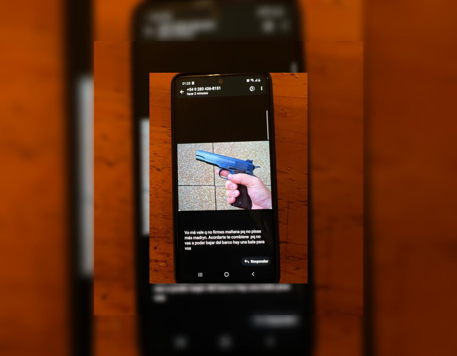 El mensaje decía textualmente: “Vo más vale q no firmes mañana pq no pisas más madryn. Acordate te combiene pq no vas a poder bajar del barco hay una bala para vos”.